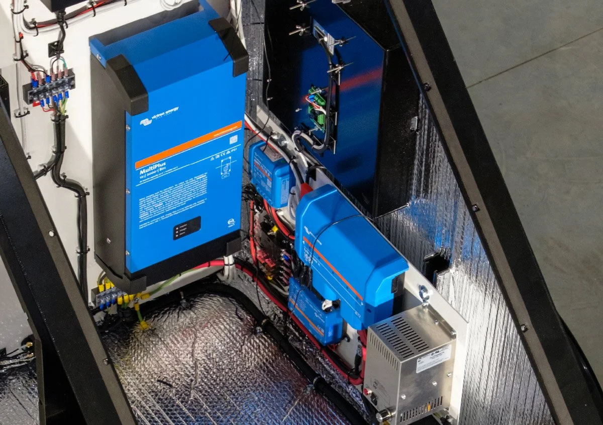 Using high end Victron Energy AC/DC power supply and equipment, the VRM portal allows for complete remote accessibility and configuration through mobile app or desktop, along with complete analytics of past, current and future power use, Generator run time and solar charging.